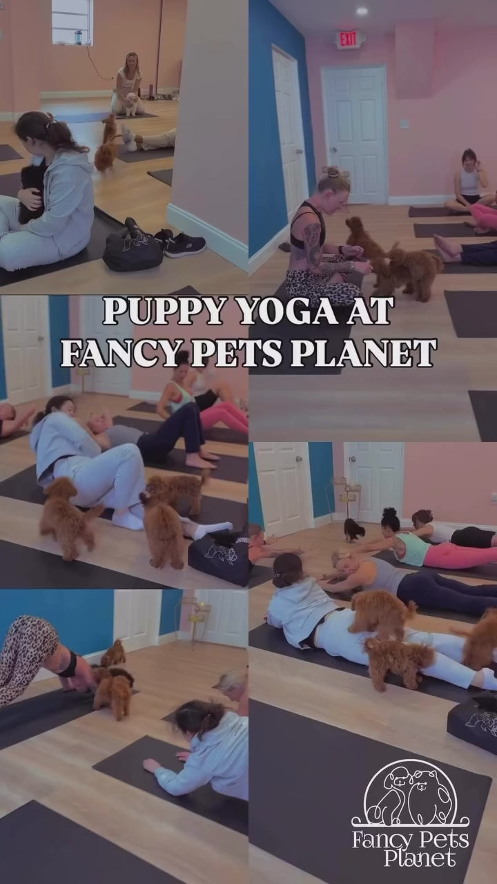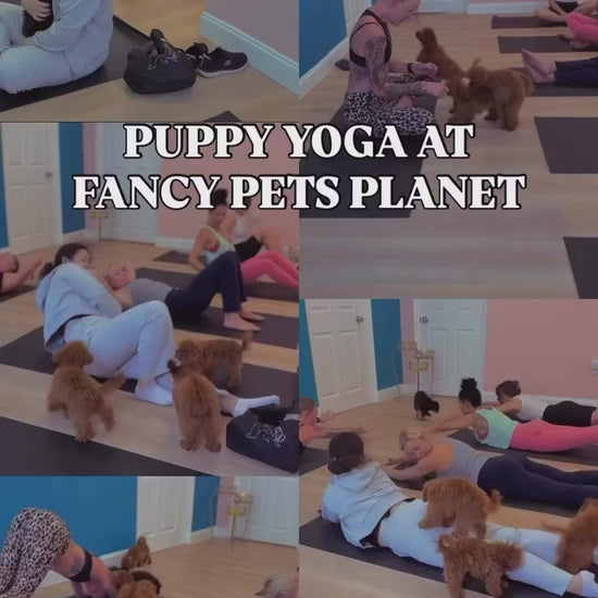 Get ready for the ultimate feel-good experience – Puppy Yoga at Fancy Pets Planet!